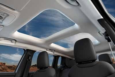 Second-row seats are offered as either a 60/40 split folding bench or a 40/20/40 split with a cargo pass through, which gives you plenty of room to fit passengers, groceries, luggage, camping supplies, snowboards, and more. If you need extra space, the Jeep Renegade's height-adjustable rear cargo floor increases your storage options, especially with the available My Sky open-air dual-panel roof.