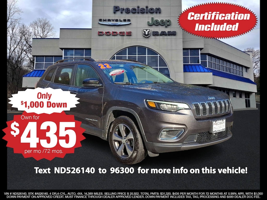 Certified Pre-Owned 2022 JeepCherokee Limited 4x4 Sport Utility